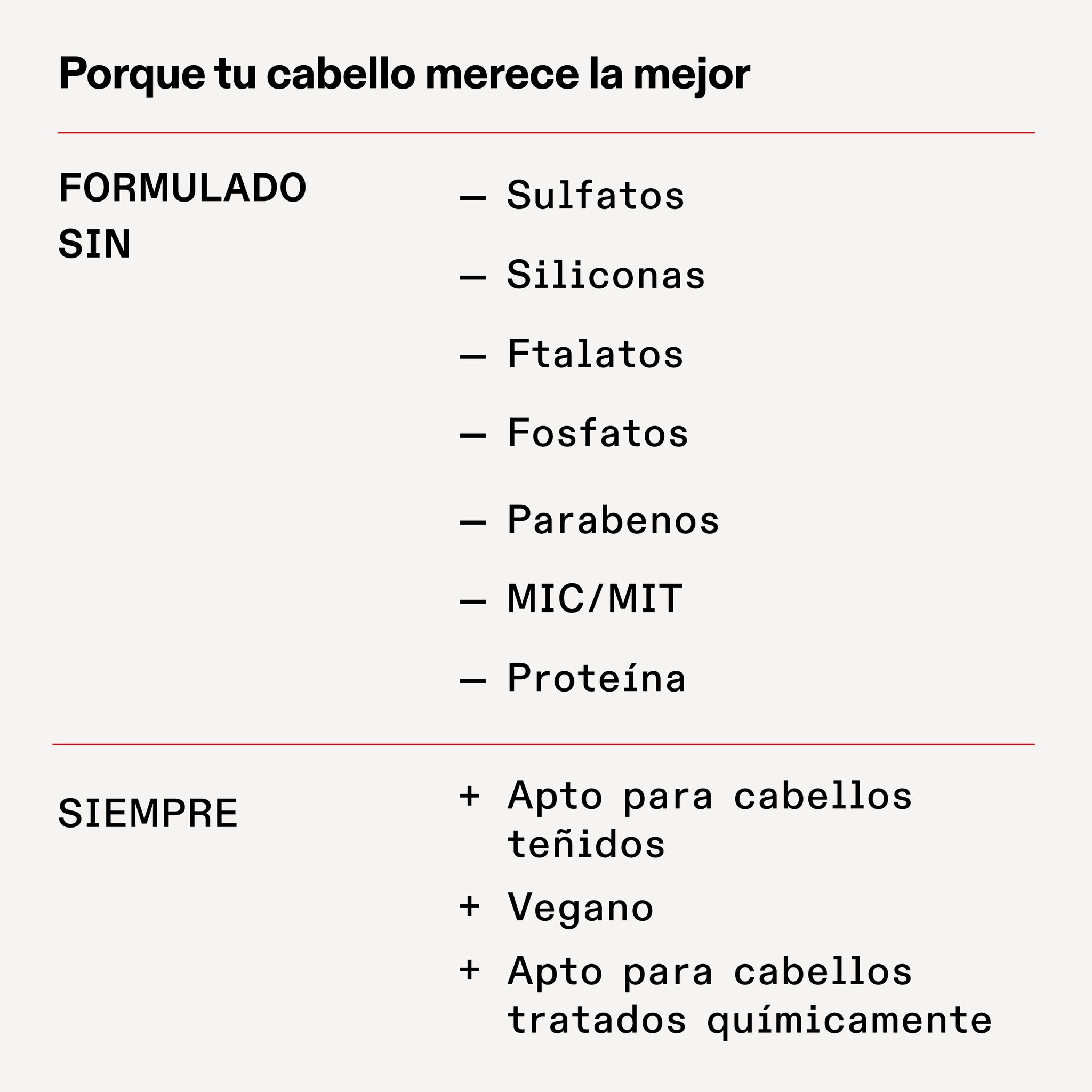 - Fortalece el cabello y previene la rotura incluso después de 5 lavados
