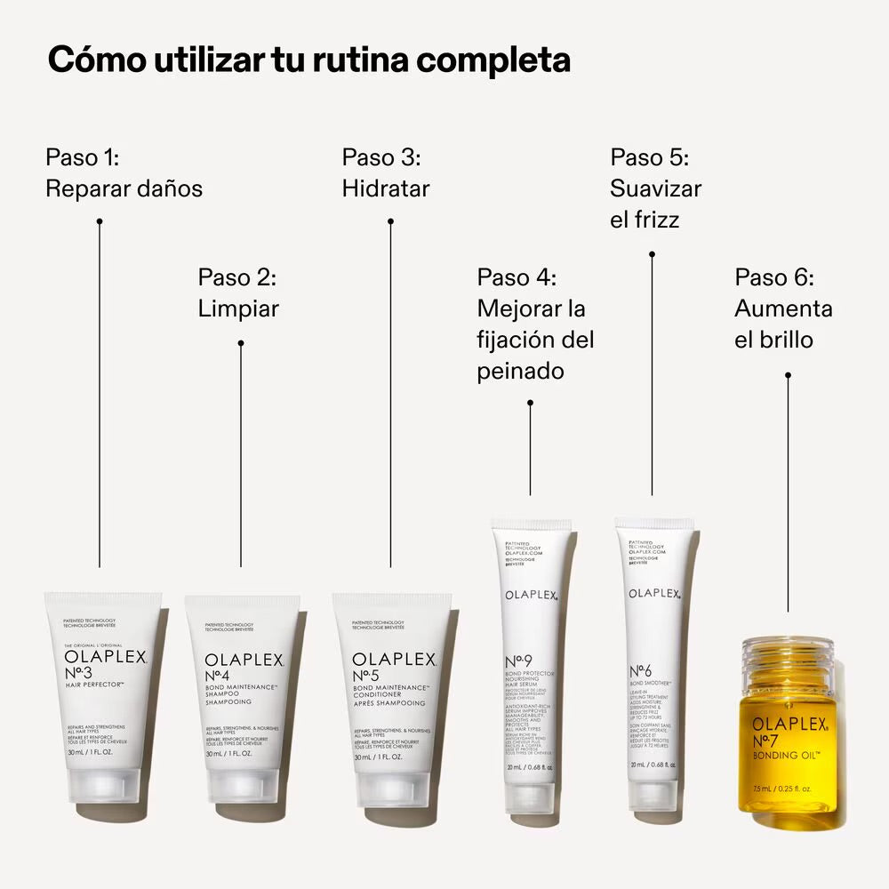 Este mini set de valor para cabello sano ofrece resultados importantes para todo tipo de cabello. El set de iniciación perfecto o una rutina para llevar en el bolso. Prueba el icónico Nº.3 para reparar y fortalecer, nuestro champú y acondicionador n.º 1, y termina con estilizadores que potencian el brillo, controlan el encrespamiento y protegen del calor y la rotura, incluido el éxito de ventas OLAPLEX Nº.7.