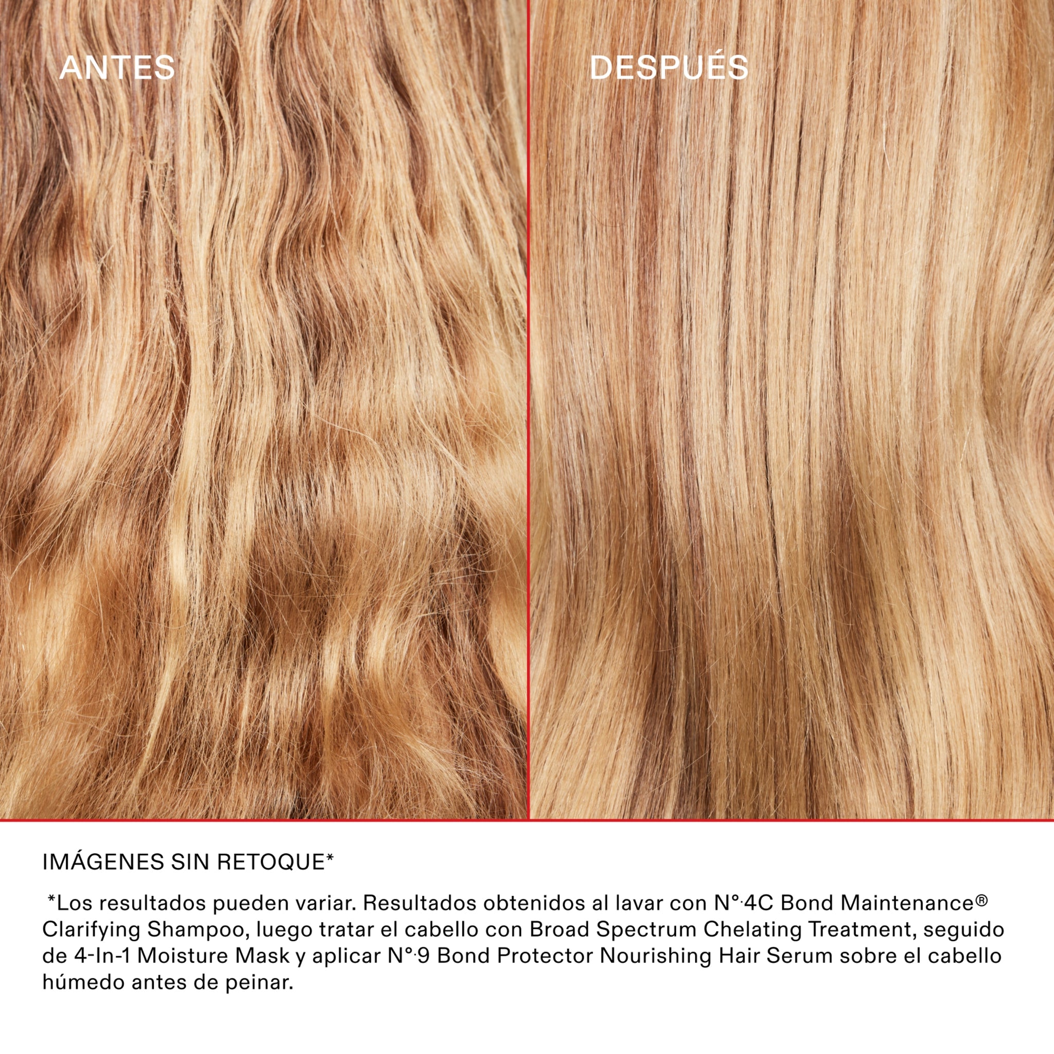 Úselo después de la pre-limpieza con OLAPLEX No.4C Bond Maintenance® Clarifying Shampoo y antes de cualquier otro servicio de salón.