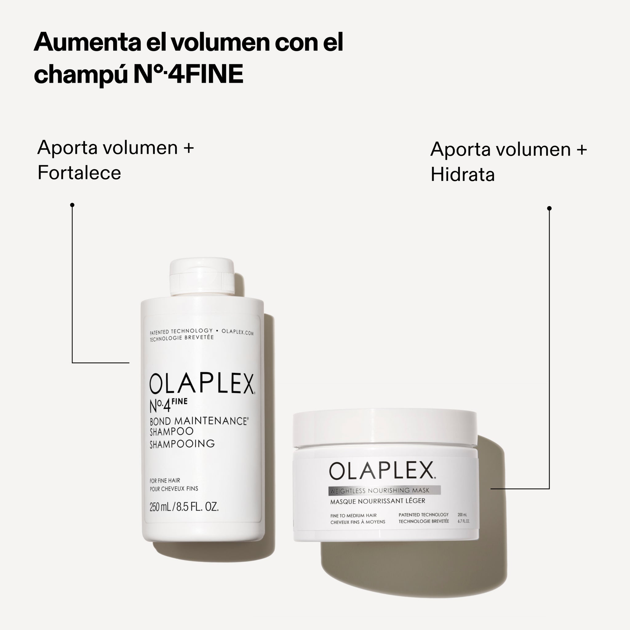 Esta mascarilla capilar aporta volumen al instante para cabello fino y medio, está formulada con OLAPLEX Biomimetic Cuticle Technology™ para retener la hidratación y sellar la cutícula capilar hasta 5 lavados.